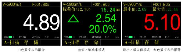 整流方式 可选择射频、正半波、负半波、全波四种整流方式。 射频:描绘了完整的回波波形; 正半波:指去掉回波的负半波只显示正半波; 负半波:指去掉回波的正半波而将负半波翻转显示为正; 全波: 指回波的正半波和翻转为正的负半波均显示。 具有穿透涂层功能,不再需要费时费力的去除涂层工作了 TT390D/DL同样具备了这一广受好评的功能。该功能是通过测量基材的两个连续底面回波实现的,可穿透10mm涂层测量厚度。该模式下还具有更多的优势: 1、免零点校准; 2、高稳定性,测量值不受探头压力、耦合层厚度和工件表面灰尘污渍的影响; 3、零漂移。 增益调整(GAIN) 调整仪器对回波信号的放大倍数,允许以ldB 为单位手动增加或减少。这个功能对声衰减材料(比如金属铸件)的测量是非常有效的。 消隐功能(BLANKING) 使红色消隐条范围内的波形无效,可以略去影响测量的 有害杂波,比如因材料表面粗糙或内部不均匀引起的噪声。 闸门高度可调(GATE) 只有回波高于闸门时,仪器才认为接收到了回波,才会有测量值。可见闸门高度可调的重要性,尤其是在应对低回波信号的应用中更是如此(比如超薄板、超厚板的测量)。 红色箭头 A-扫描模式有一个红色箭头指示测量点,厚度读数就是该点的横坐标。它可帮助判断厚度读数是否正确,正确测量时,红箭头应该指向底面回波前沿。 范围(RANGE) 调整显示在屏幕上的波形范围,视觉上波形被压缩或展开。如果没有正确的设置显示范围,回波波形可能出了显示区域而看不到,但仍能正确地显示测量值。 平移(DELAY) 调整显示在屏幕上的波形的起始位置,视觉上波形被水平移动。如果没有正确的设置平移,回波波形可能出了显示区域而看不到,但仍能正确地显示测量值。范围和平移功能可将波形的任何一部分放大显示在屏幕上。 更多实用的功能 差值/缩减率:差值模式显示实测厚度与预设厚度之间的差值变化。缩减率是计算并显示材料变薄以后厚度缩减的百分比,典型应用时因弯曲而变薄的金属材料进行测量。 大/小值捕获:屏幕上同时显示当前厚度值、小值和大厚度值。 报警模式:报警时动态改变厚度读数颜色。 更新率4Hz、8Hz、16Hz可调:普通的应用可选择4Hz,当需要快速扫查,比如高温测量时可选更高的更新率。 多种语言界面可选:中文、英文、日文等。